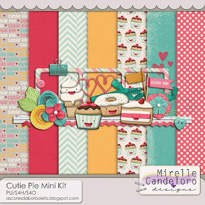 Olá meninas, apresento para vocês os novos produtos da Mirelle Candeloro chamados Cutie Pie. Ela Fez um Mini Kit muito fofo e delicado e um pacote de lindos Templates para vocês decorarem suas páginas de scrap. Vcs podem comprá-los separados ou no Bundle, que está com um precinho especial.